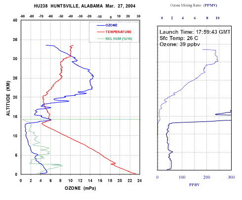 Weekly Vertical Ozone Profiles Launched from the Regional Atmospheric Profiling Center for Discovery (RAPCD) at the National Center for Space Science and Technology, NSSTC, UAH campus